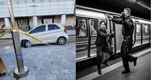 당시 영상을 보면 차에서 내린 범인은 마스크를 낀 채 검은 후드티를 입고 후드 모자를 쓴 상태였다. 여기에 검은 선글라스를 쓰고, 바지와 신발 역시 검은색 계열로 맞춰 착용했다. 그렇기에 누가 봐도 계획범죄다. 차에서 내린 그는 특정인을 대상으로 흉기를 휘두르지 않고, 여기저기 뛰어다니며 사람들에게 해를 가했다. 이후 신고를 받고 현장에 출동한 경찰은 오후 6시 5분쯤 범인을 잡았다. 10분 동안의 엄청난 비극이었다.