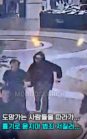 영상을 보면 두리번 거리면서 목표물을 노리는듯 한 모습을 하고 서성이는 모습이 CCTV 에도 포착이 되는데요 경찰과 소방당국은 신고를 접수하고 빠르게 현장에 출동해 6시 5분께 용의자를 현행범으로 체포했다고 합니다
